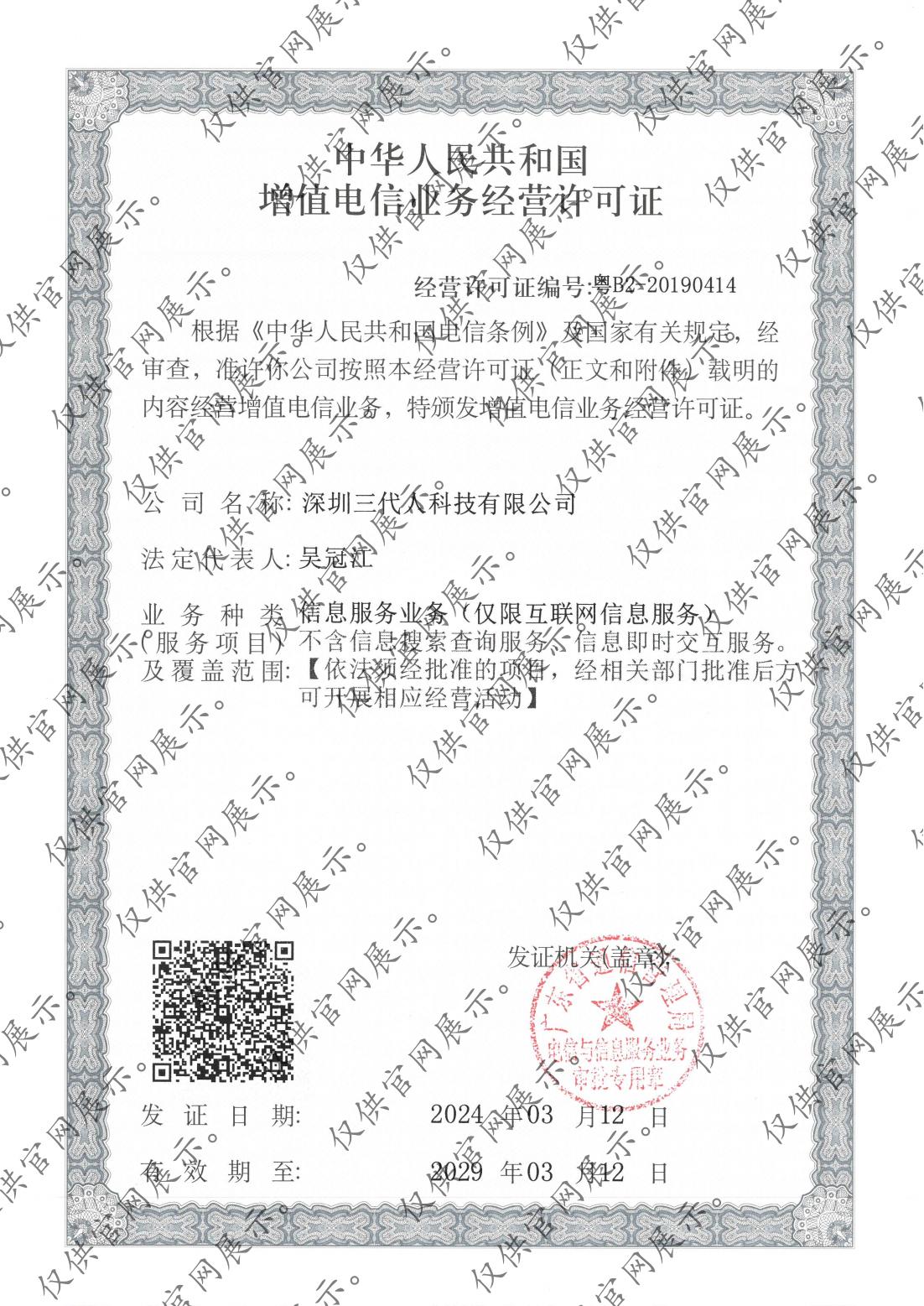 增值電信業務經營許可證:粵B2-20190414